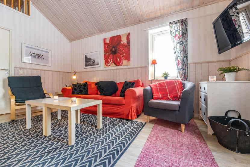 TV, brændeovn (brænde indgår ikke), tørreskab, rum til skiudstyr.