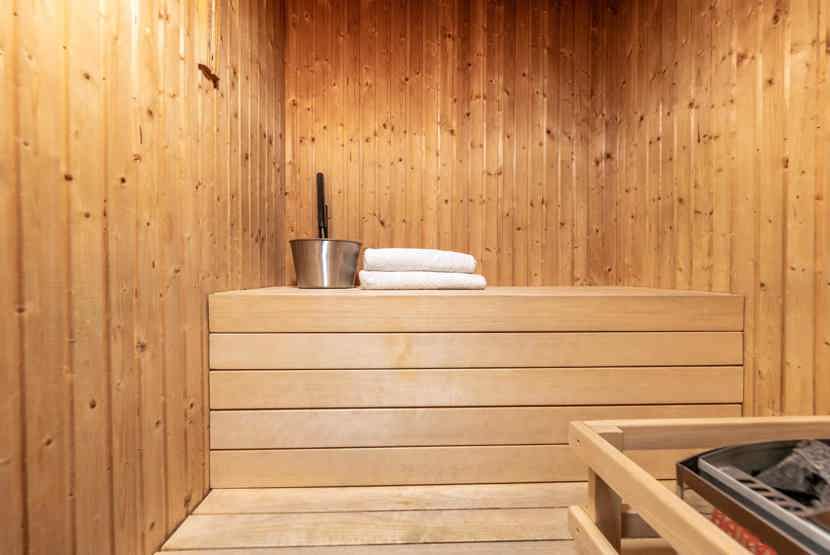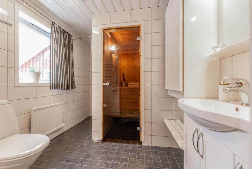 1. sals lejlighed, 6 sengepladser, 52 m², alrum med køkkenafdeling, 2 soveværelser, 1 bruser, 1 WC, sauna.