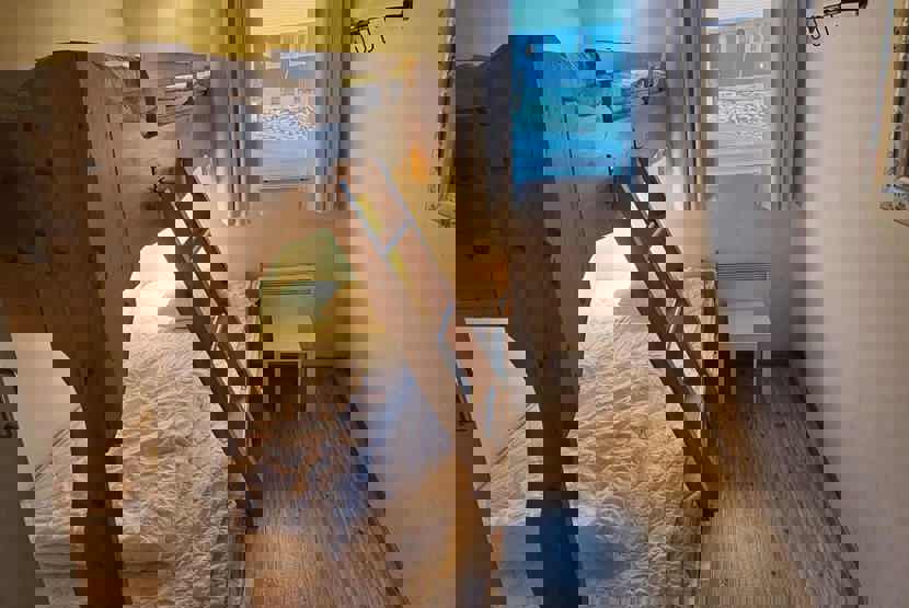 Soveværelse-1= 1 køjeseng. Soveværelse-2= 2 køjesenge.