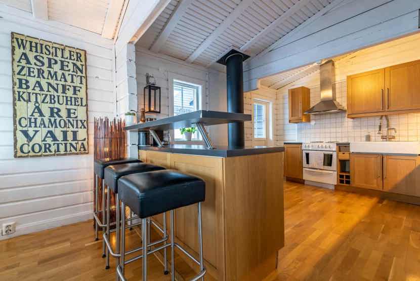 TV, brændeovn (brænde indgår ikke), vaskemaskine, tørreskab, rum til skiudstyr, altan (skovles ikke).