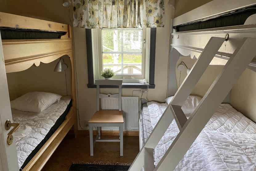 Soveværelse-1= 1 køjeseng med 120 cm bred underkøje , 1 køjeseng.