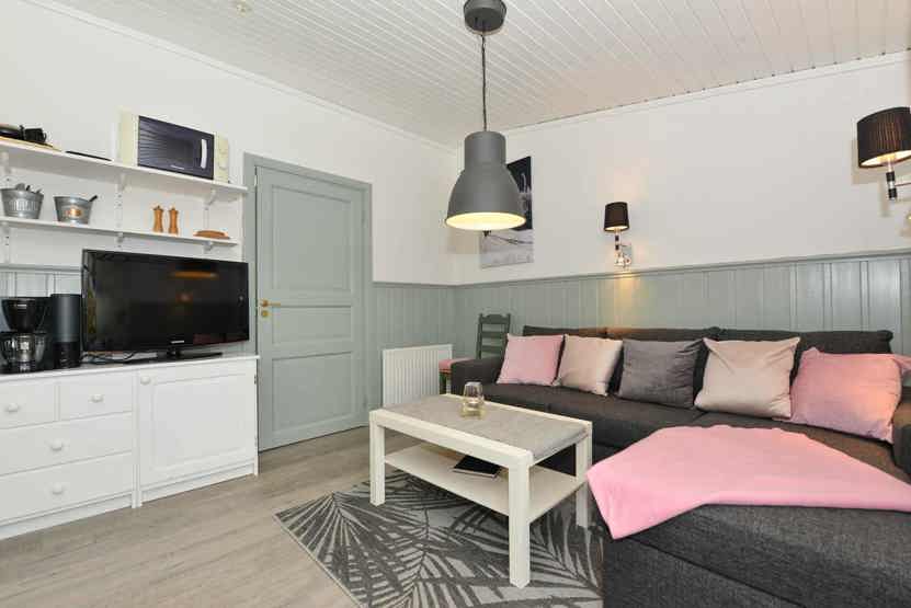 TV, tørreskab, rum til skiudstyr, altan (skovles ikke), 1 højstol, 1 barneseng.