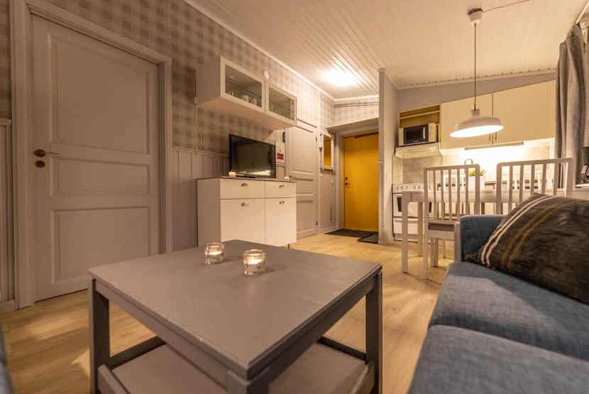 Opholdsstue med køkkenafdeling.
