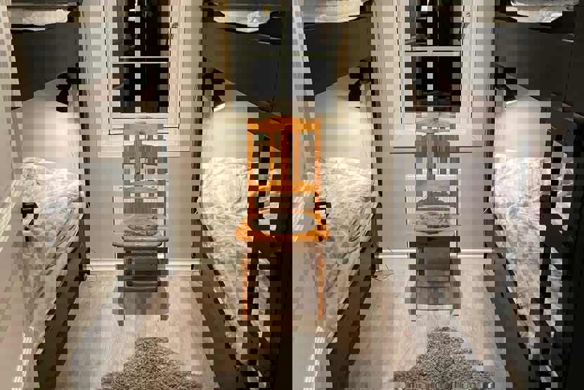 Soveværelse-1= 2 køjesenge hvor både over og underkøje er 80 cm bred.