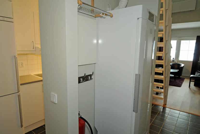 TV, vaskemaskine, tørreskab, brandtrappe til hems, rum til skiudstyr, altan (skovles ikke).