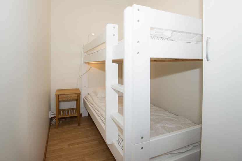 Soveværelse-1= 1 dobbeltseng. Soveværelse-2= 1 køjeseng, i værelse uden vindue. Soveværelse-3= 1 køjeseng, i værelse uden vindue.