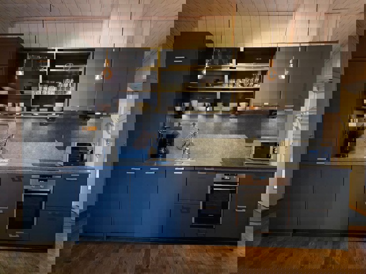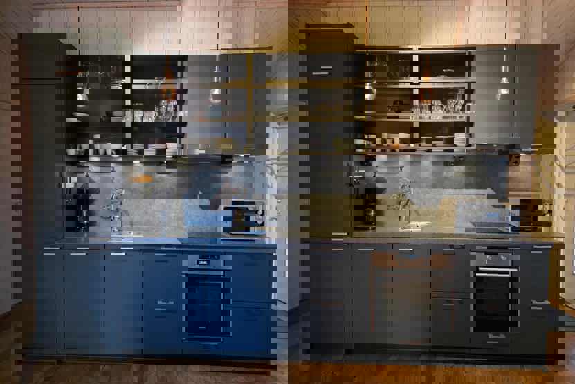 Køkkenet indeholder: keramiske kogeplader, indbygningsovn, køleskab, frys, opvaskemaskine, microovn.