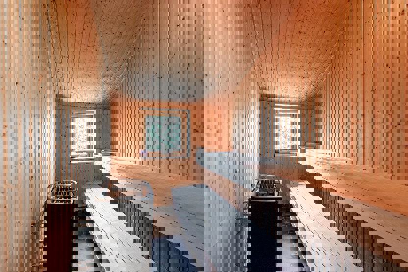 Badeværelset-1 = bruse/wc/sauna. Badeværelset-2 = bruse/wc.