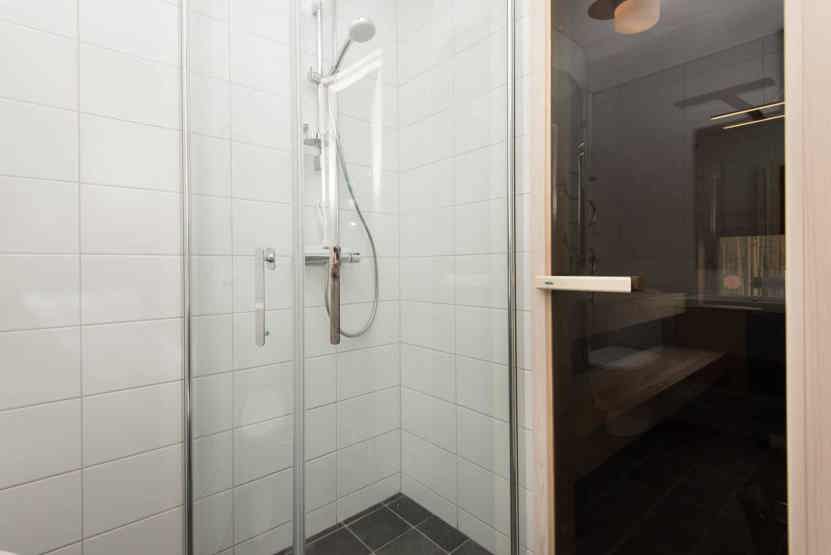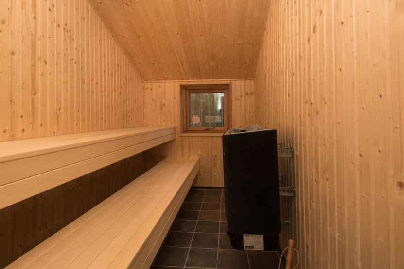 Badeværelset-1 = bruse/wc/sauna. Badeværelset-2 = bruse/wc/håndklædetørrer.