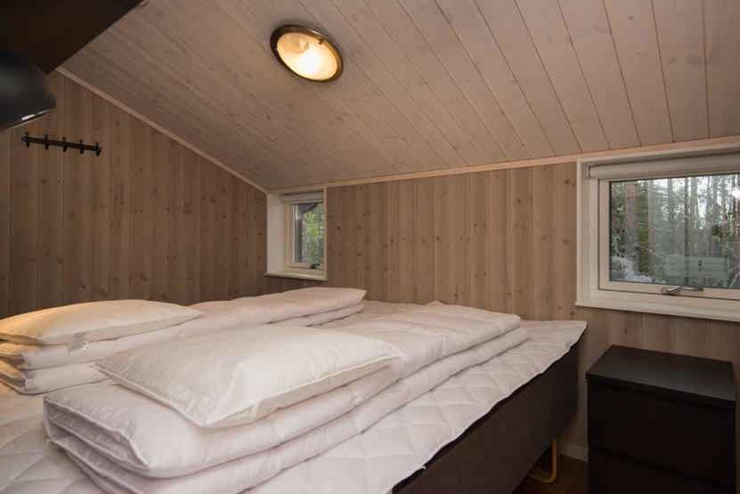 Soveværelse-1= 1 dobbeltseng 160 cm bred. Soveværelse-2= 2 køjesenge 80 cm bred.