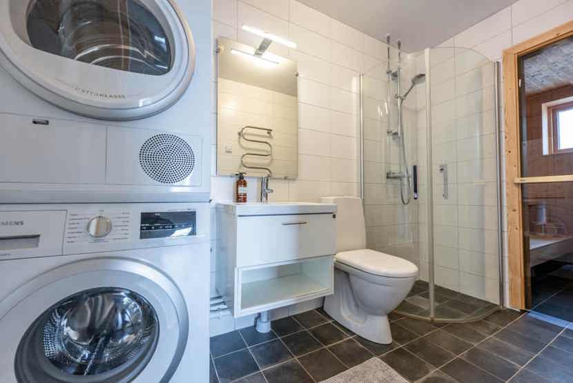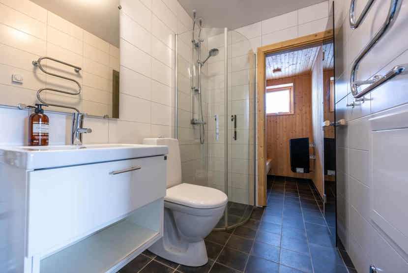 Badeværelset-1 = bruse/wc/sauna. Badeværelset-2 = bruse/wc.
