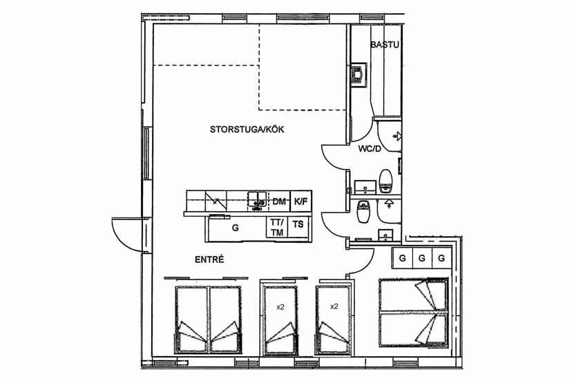 TV, tørreskab, vaskemaskine, tørretumbler, balkon, rum til skiudstyr, I området er der et rullebånd, der går op til Söderåstorget. Dette rullebånd er ikke en del af SkiStars skisystem, dvs. at ansvar og vedligeholdelse udføres af en ekstern part. Afstand fra indkvartering til rullebåndet varierer inden for området. Om sommeren er der udendørs pool og udendørs fitnesscenter. SkiStar er ikke ansvarlig for drift og vedligeholdelse, dette ligger hos en ekstern part.