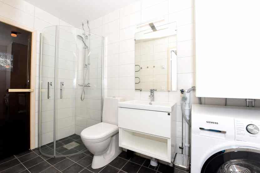 Badeværelset-1 = bruse/wc/sauna. Badeværelset-2 = bruse/wc.