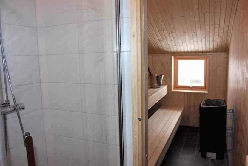 Badeværelset-1 = bruse/wc/sauna. Badeværelset-2 = bruse/wc.