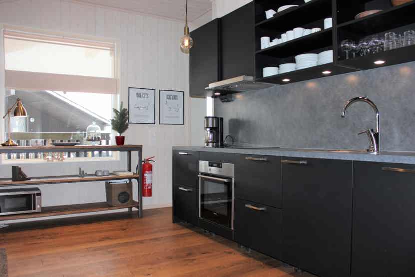 Køkkenet indeholder: keramiske kogeplader, indbygningsovn, køleskab, frys, opvaskemaskine, microovn.
