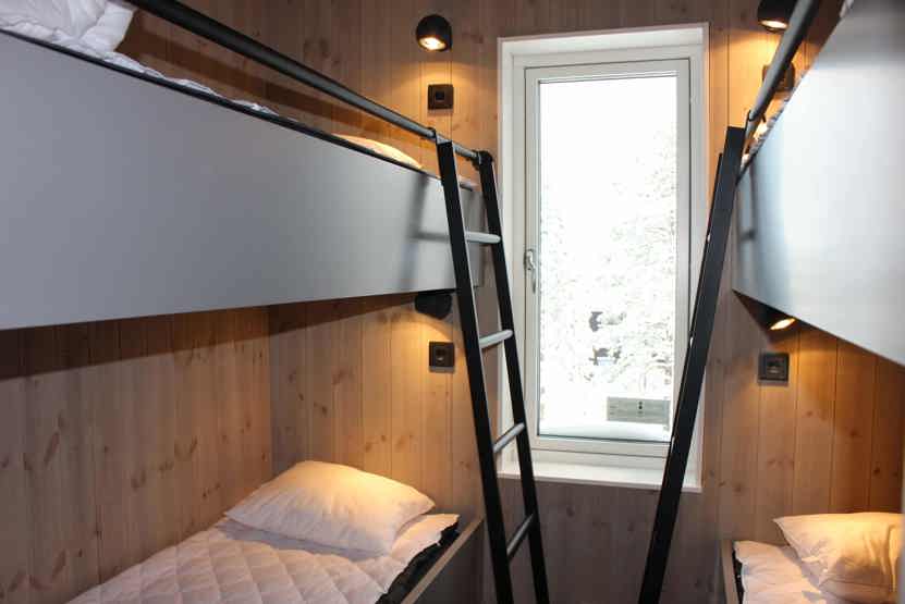 Soveværelse-1= 1 dobbeltseng 160 cm bred. Soveværelse-2= 2 køjesenge 80 cm bred.