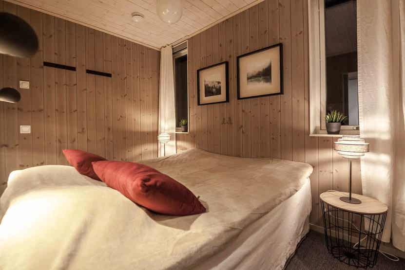 Soveværelse-1= 1 dobbeltseng 160 cm bred. Soveværelse-2= 2 køjesenge 80 cm bred.