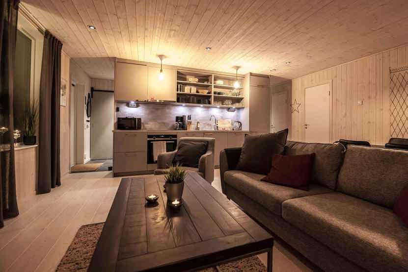 Opholdsstue med køkkenafdeling.