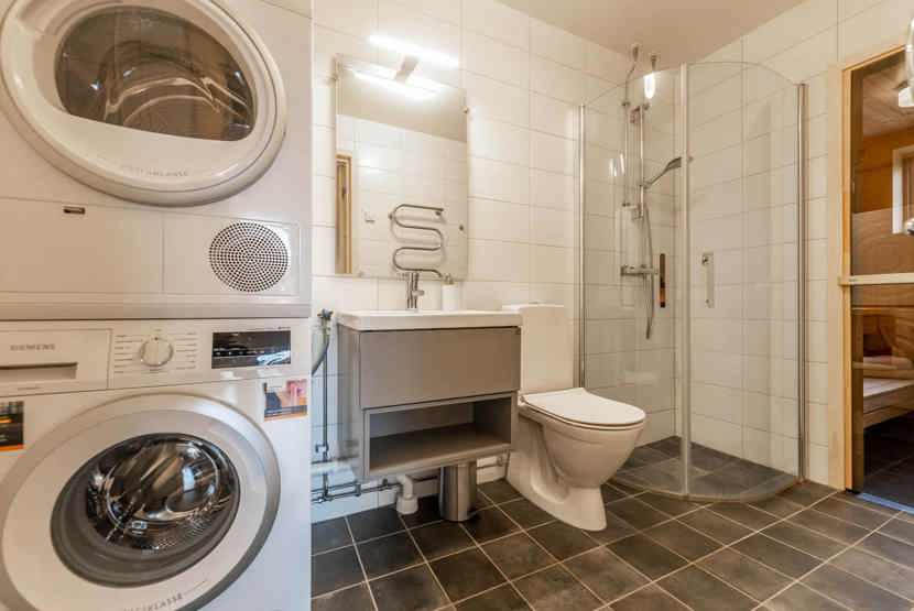 Badeværelset-1 = bruse/wc/sauna. Badeværelset-2 = bruse/wc.