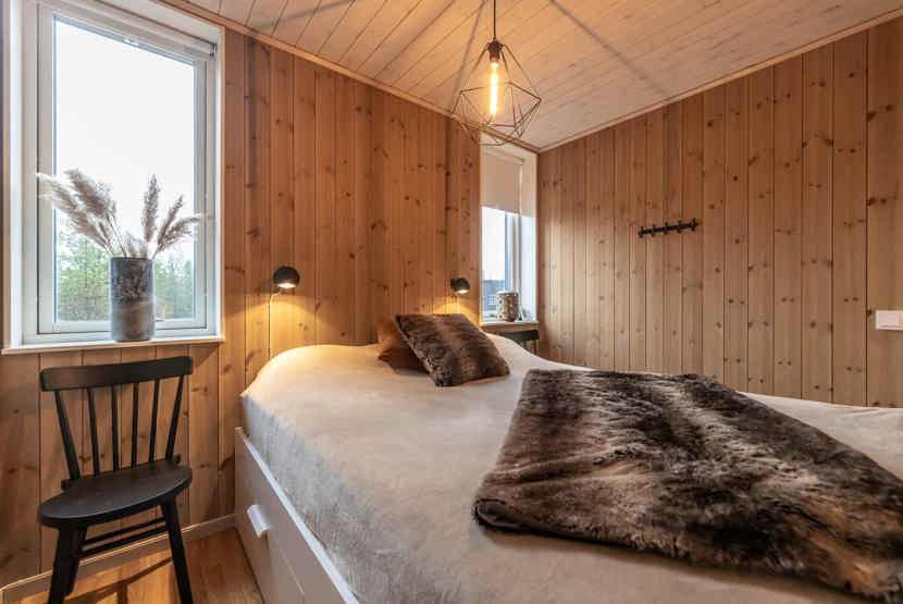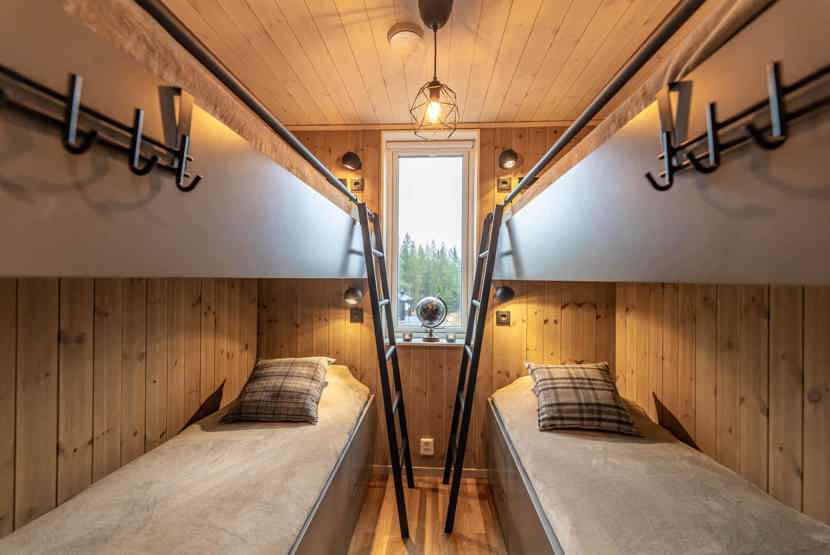 Soveværelse-1= 1 dobbeltseng 160 cm bred. Soveværelse-2= 2 køjesenge hvor både over og underkøje er 80 cm bred.