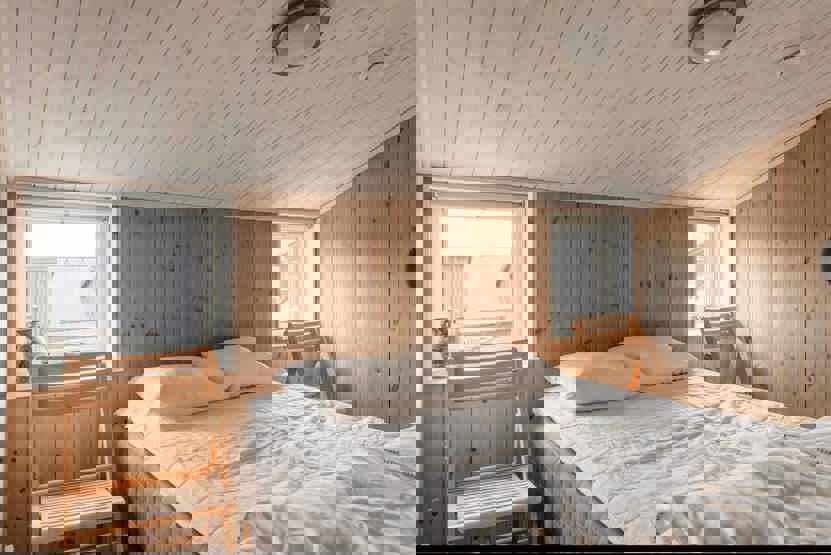 Soveværelse-1= 1 dobbeltseng 180 cm bred. Soveværelse-2= 2 køjesenge 80 cm bred. Soveværelse-3= 1 dobbeltseng 160 cm bred.