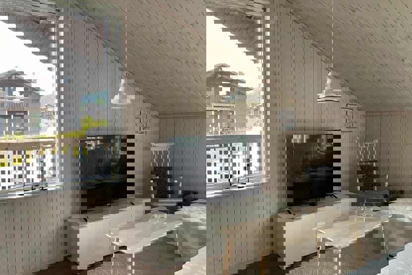Opholdsstue med køkkenafdeling. TV, vaskemaskine, tørretumbler, tørreskab, 2 højstole, balkon, havem¢bler, rum til skiudstyr, 1 parkeringsplads, I området er der et rullebånd, der går op til Söderåstorget. Dette rullebånd er ikke en del af SkiStars skisystem, dvs. at ansvar og vedligeholdelse udføres af en ekstern part. Afstand fra indkvartering til rullebåndet varierer inden for området. Om sommeren er der udendørs pool og udendørs fitnesscenter. SkiStar er ikke ansvarlig for drift og vedligeholdelse, dette ligger hos en ekstern part.