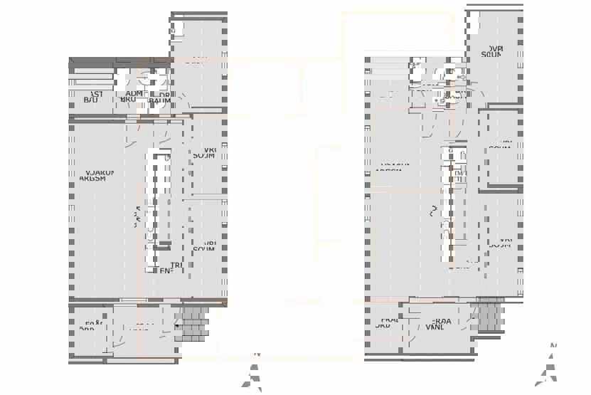 Badeværelset-1 = bruse/wc/sauna. Badeværelset-2 = bruse/wc.