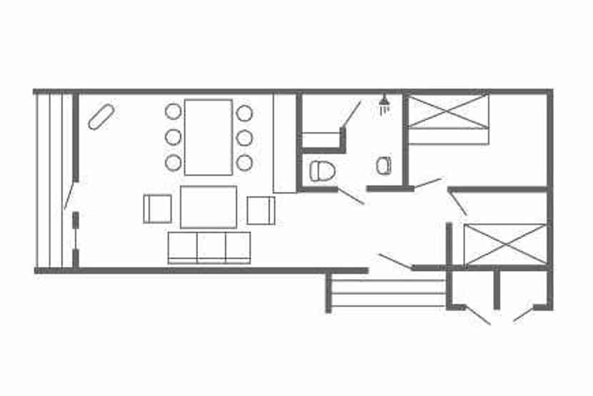 Soveværelse-1= 1 køjeseng. Soveværelse-2= 1 køjeseng med 140 cm bred underkøje .