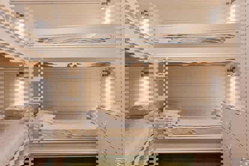 Alkove-1 = 1 køjeseng 110 cm bred, 1 køjeseng med 80 cm bred over og underkøje.