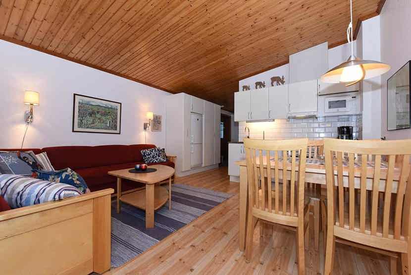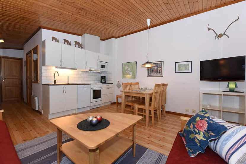 Högfjällsbyn ligger i Högfjället. 1. sals lejlighed, 4+1 sengepladser, 42 m², alrum med køkkenafdeling, 2 soveværelser, 1 bruser, 1 WC, sauna.