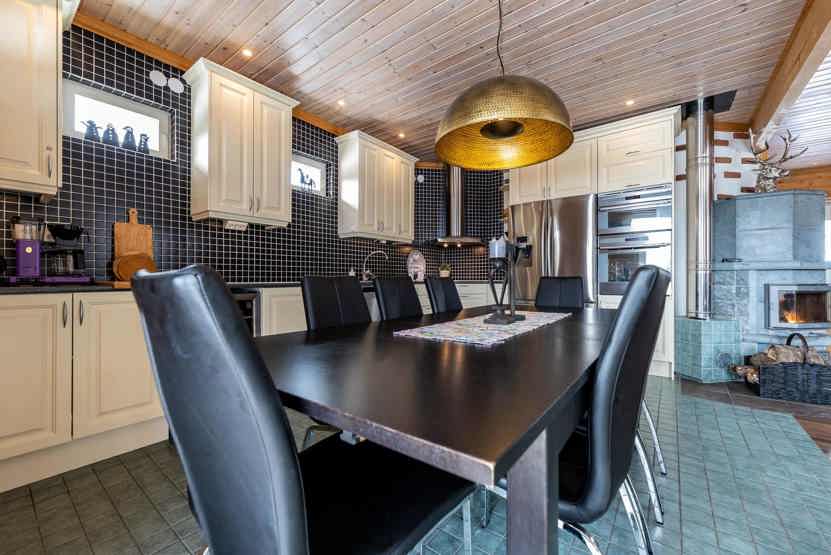 Køkkenet indeholder: kogeplade, indbygningsovn, køleskab, frys, opvaskemaskine, vinkøleskab, microovn.