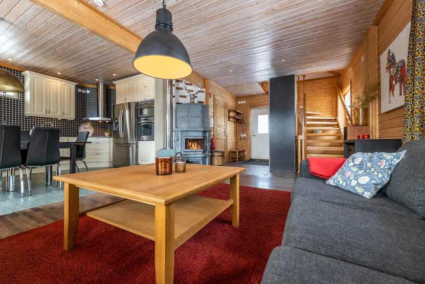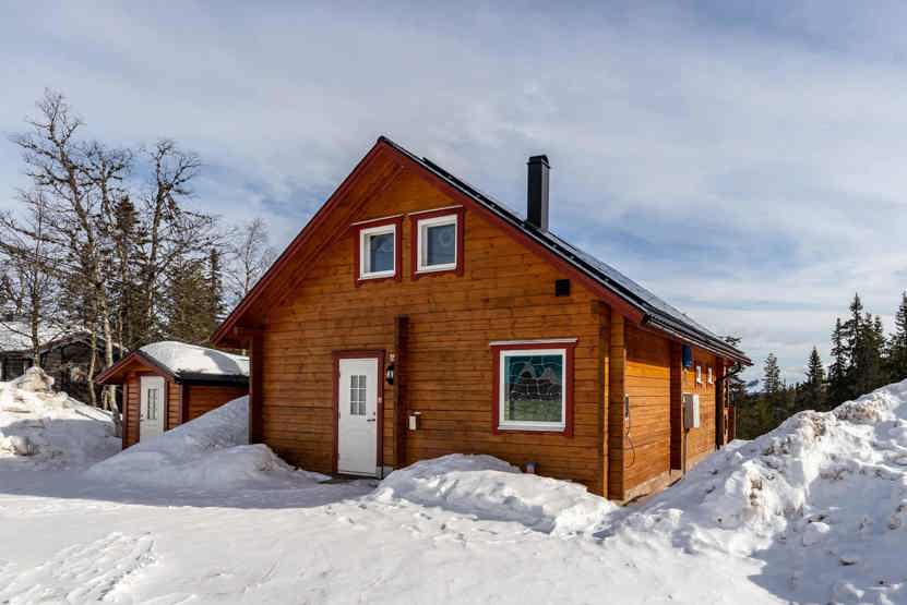 Köarskär ligger i Högfjället. Fritstående hytte, 10 sengepladser, 154 m², alrum med køkkenafdeling, 4 soveværelser, 2 brusere, 2 WC, sauna.