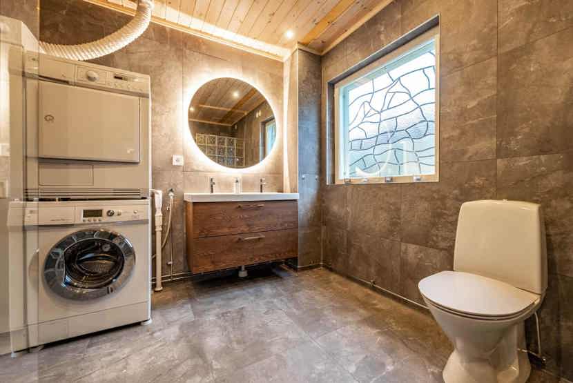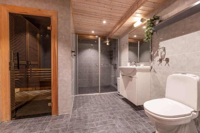 Badeværelset-1 = bruse/wc/sauna. Badeværelset-2 = bruse/wc.