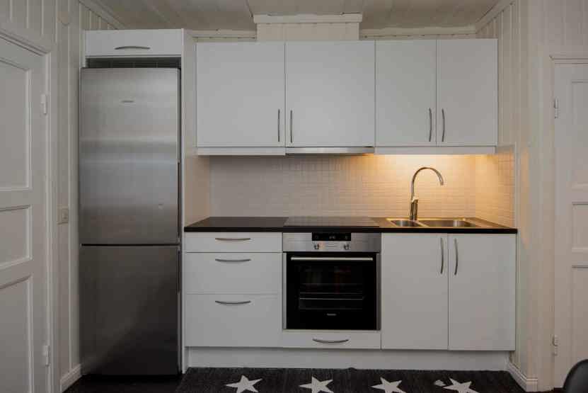Køkkenet indeholder: keramiske kogeplader, indbygningsovn, frys, køleskab, microovn.