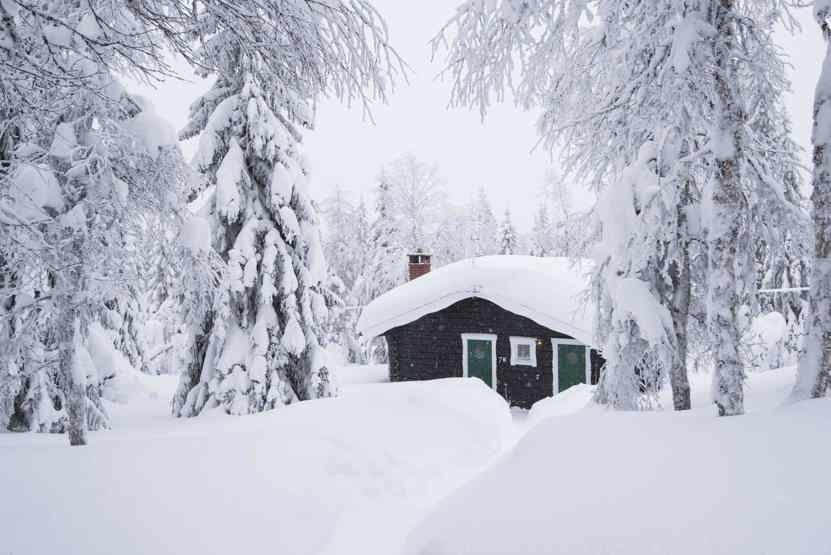 Köarskär ligger i Högfjället. Fritstående hytte, 4 sengepladser, 30 m², alrum med køkkenafdeling, 2 soveværelser, 1 bruser, 1 WC, sauna.
