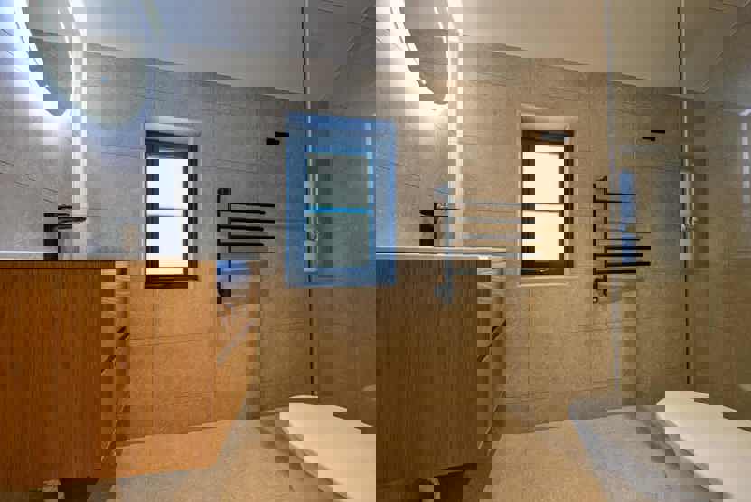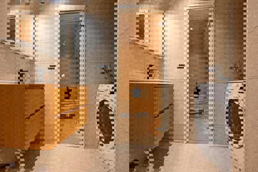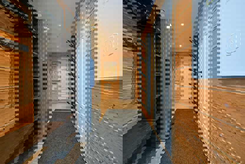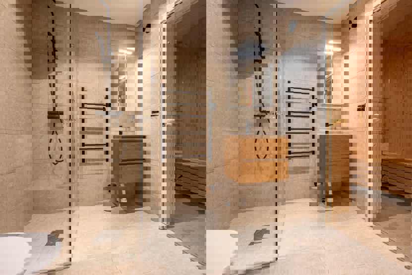 Badeværelset-1 = bruse/wc/sauna. Badeværelset-2 = bruse/wc.