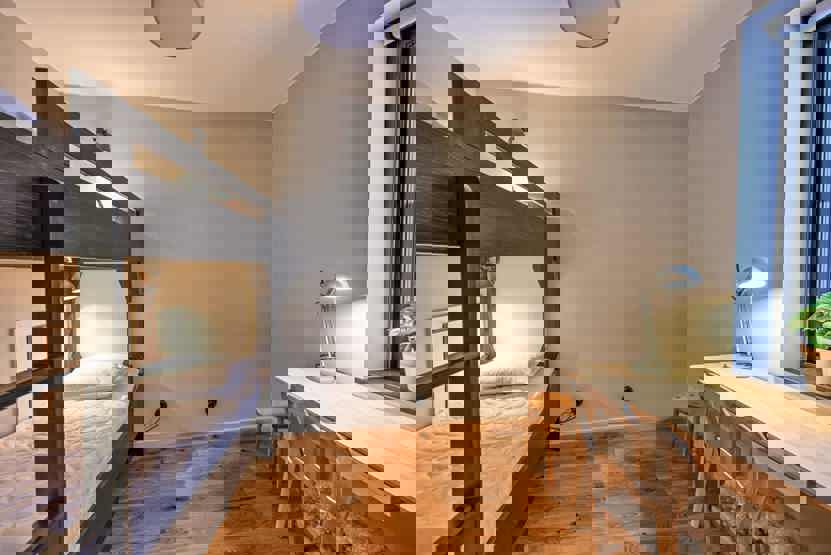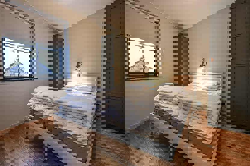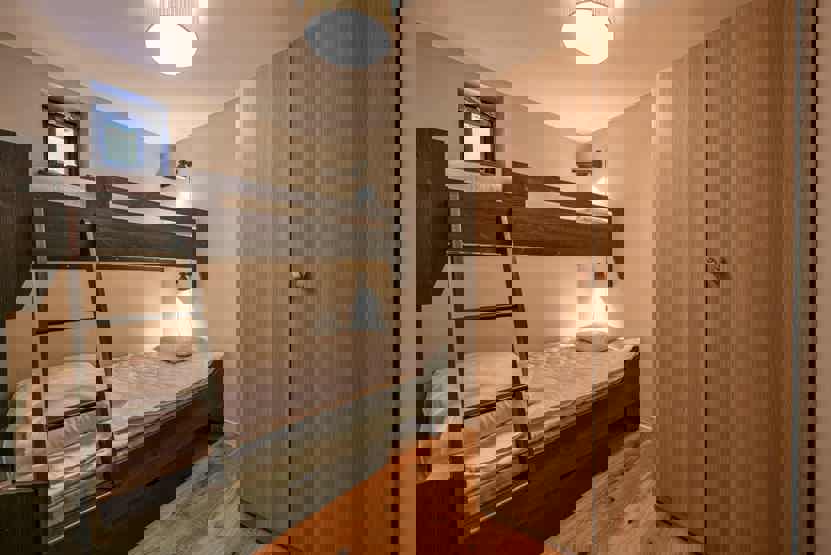 Soveværelse-1= 1 dobbeltseng 160 cm bred. Soveværelse-2= 1 dobbeltseng 160 cm bred. Soveværelse-3= 1 køyeseng med 120 cm bred underkøye og 80 cm bred overkøye. Soveværelse-4= 1 køjeseng.