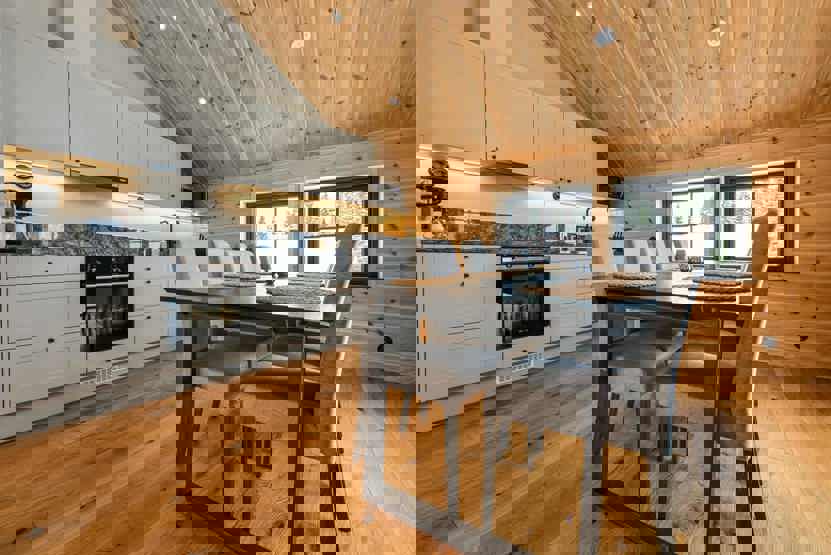 Køkkenet indeholder: keramiske kogeplader, indbygningsovn, køleskab, frys, opvaskemaskine, microovn.