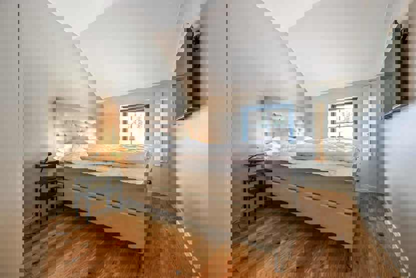 Soveværelse-1= 1 dobbeltseng 160 cm bred. Soveværelse-2= 1 dobbeltseng 160 cm bred. Soveværelse-3= 1 køyeseng med 120 cm bred underkøye og 90 cm bred overkøye, 1 køjeseng hvor både over og underkøje er 90 cm bred. Soveværelse-4= 1 køyeseng med 120 cm bred underkøye og 90 cm bred overkøye.