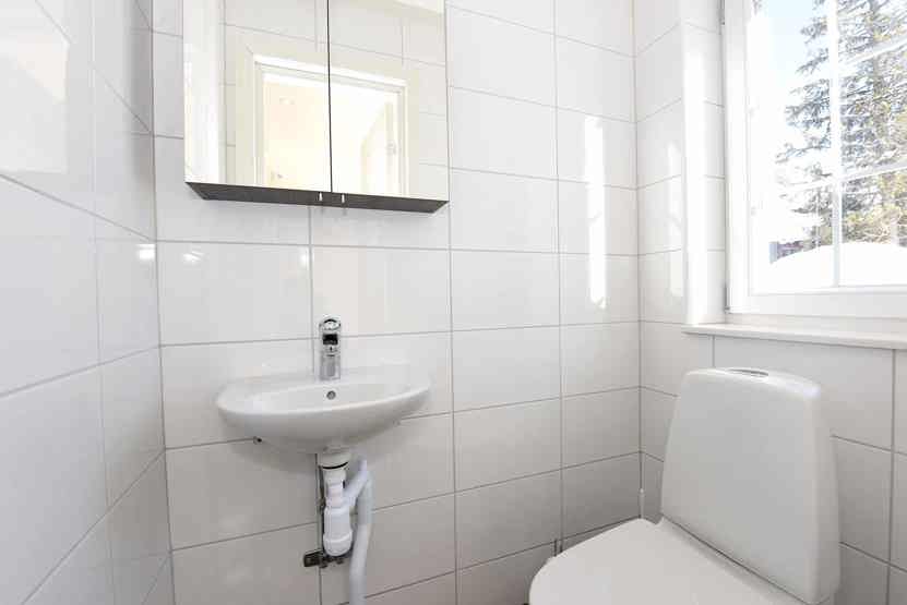 TV, strygejern, balkon, rum til skiudstyr.