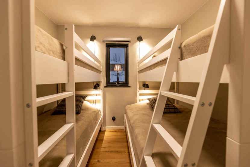 Soveværelse-1= 1 dobbeltseng 180 cm bred. Soveværelse-2= 2 køjesenge. Hems 1= 2 enkeltsenge.