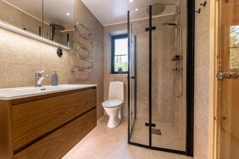 Badeværelset-1 = bruse/wc/sauna. Badeværelset-2 = bruse/wc.