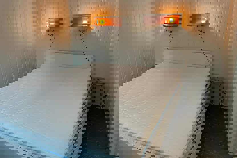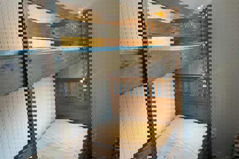 Soveværelse-1= 1 dobbeltseng 160 cm bred. Soveværelse-2= 1 køjeseng hvor både over og underkøje er 90 cm bred.