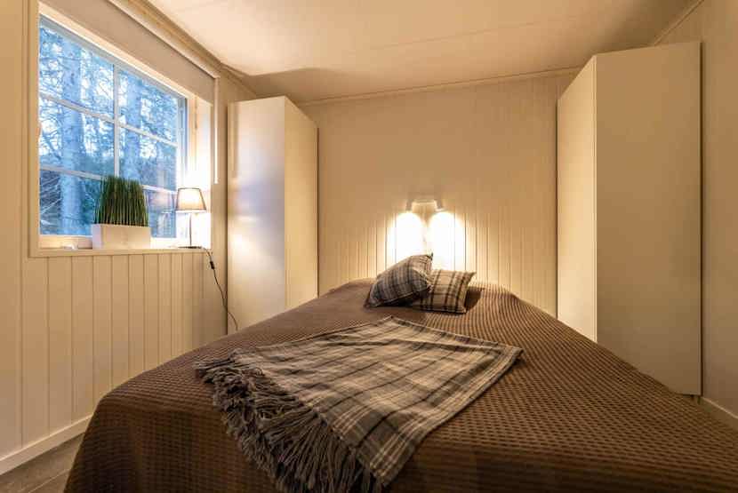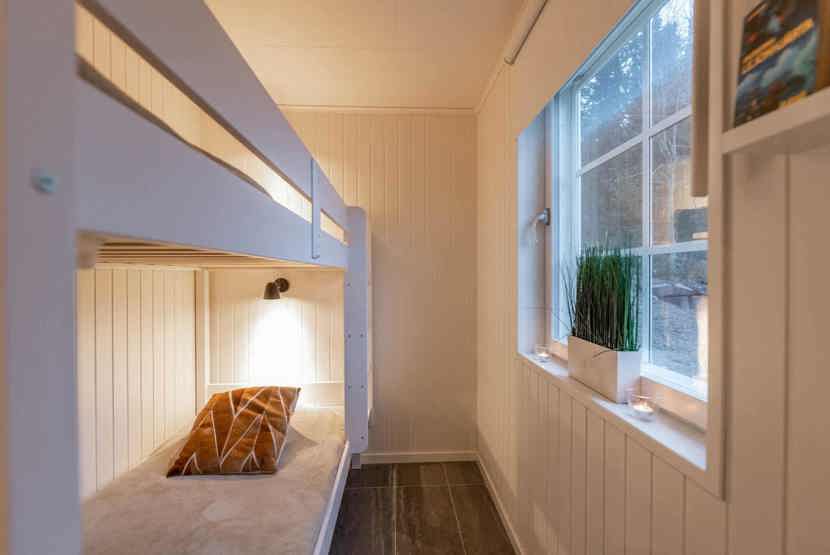 Soveværelse-1= 1 dobbeltseng 160 cm bred. Soveværelse-2= 1 køjeseng hvor både over og underkøje er 90 cm bred.