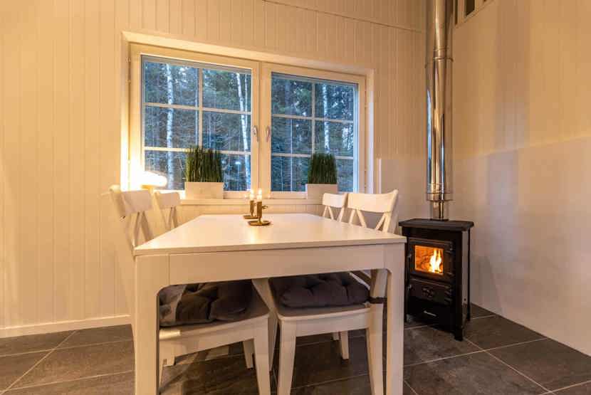 TV, brændeovn (brænde indgår ikke), tørreskab, altan/balkon (skovles ikke), havem¢bler, 1 parkeringsplads, Byggestøy kan forekomme.
