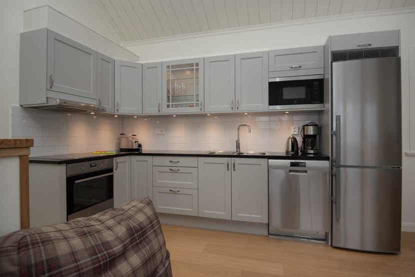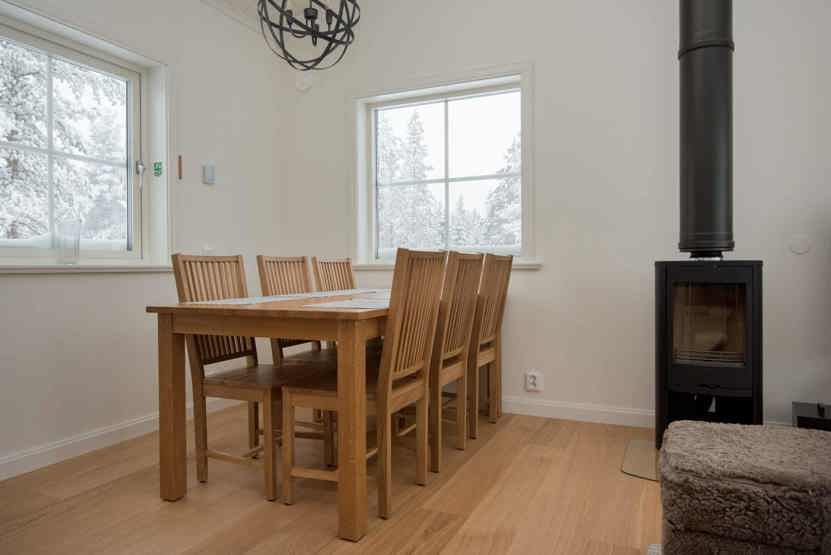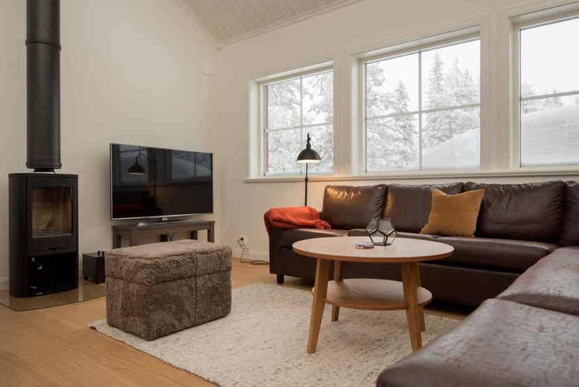 TV, brændeovn (brænde indgår ikke), tørretumbler, rum til skiudstyr.