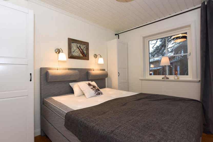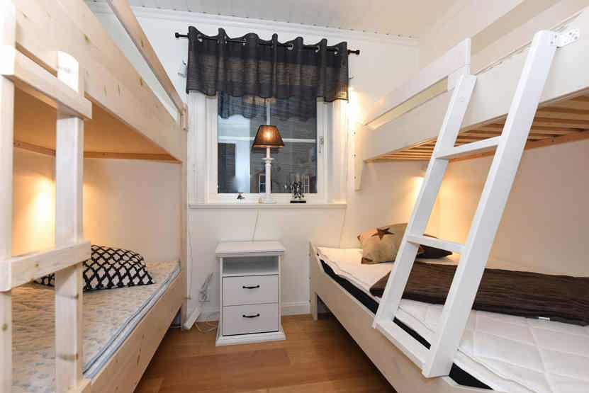 Soveværelse-1= 1 dobbeltseng. Soveværelse-2= 1 køjeseng, 1 køyeseng med 120 cm bred underkøye og 90 cm bred overkøye.