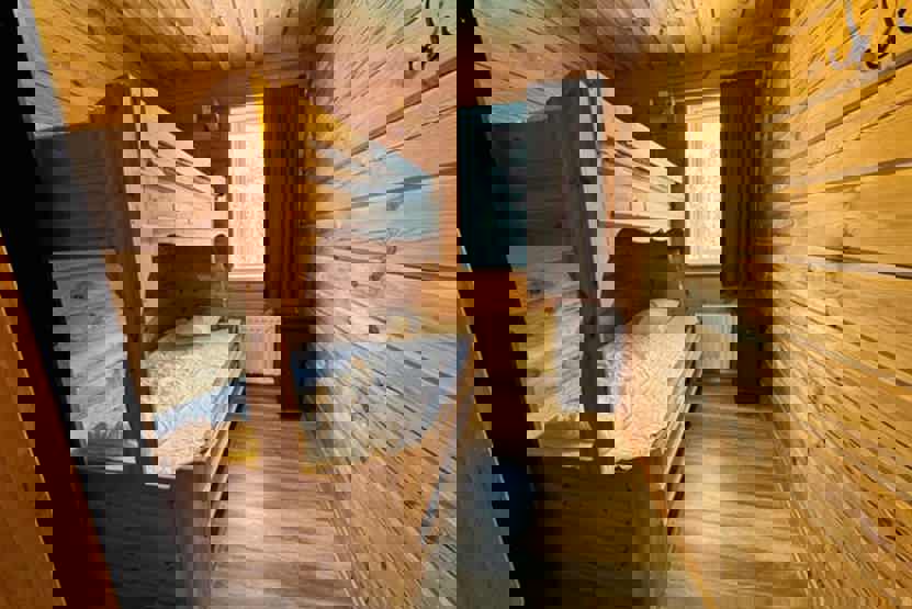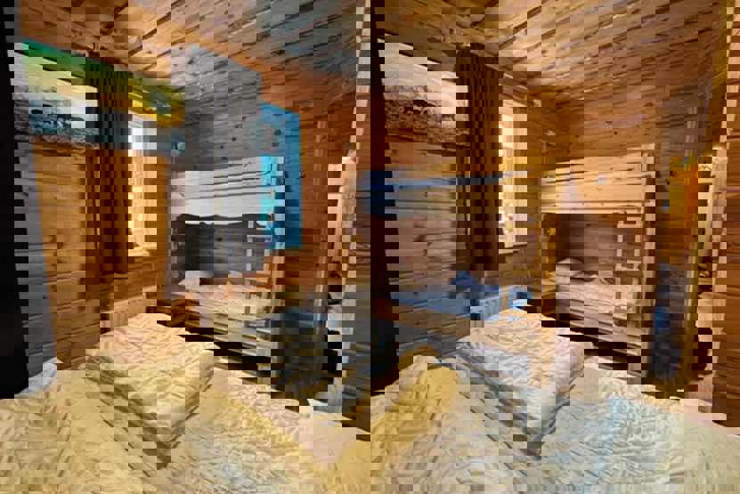 Soveværelse-1= 1 køjeseng med 120 cm bred underkøje . Soveværelse-2= 1 køjeseng med 120 cm bred underkøje . Soveværelse-3= 1 køjeseng, 1 dobbeltseng.