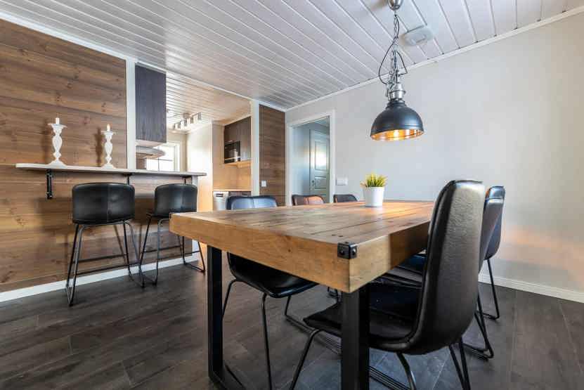 Opholdsstue med køkkenafdeling. TV, brændeovn (brænde indgår ikke), altan (skovles ikke), tørreskab, rum til skiudstyr.