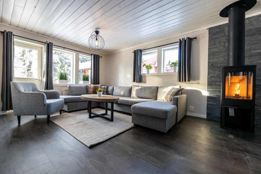 Opholdsstue med køkkenafdeling. TV, brændeovn (brænde indgår ikke), altan (skovles ikke), tørreskab, rum til skiudstyr.